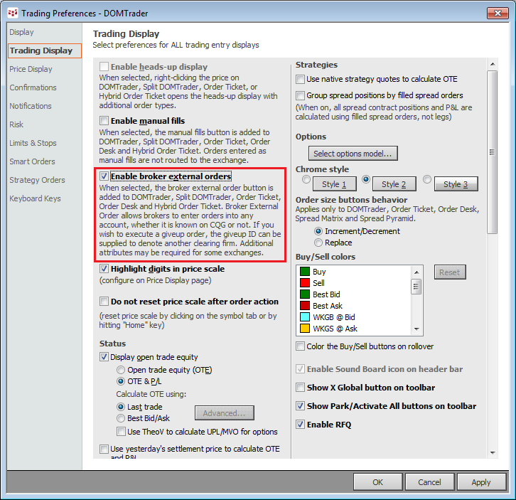 We're pleased to release this new Broker External Orders functionality which includes placing orders into any account (including accounts associated with the broker that are not set up on CQG), optional give up designation, and other exchange attributes.