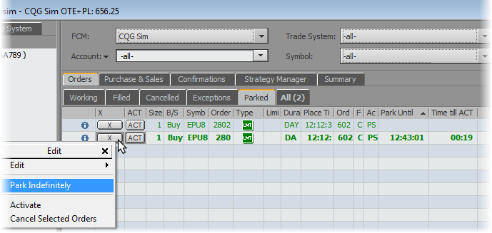 Quickly cancel activation for orders in the Park Until and Time Till states by right clicking on the cancel button and selecting "Park Indefinitely." This will save you an extra step.