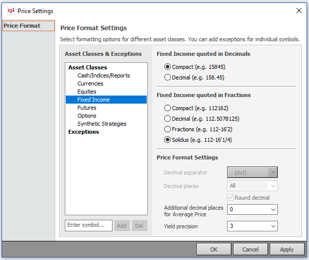 For traders of markets that are priced in fractions you can now display fractional prices that include a fraction of the fraction using what is referred to as Solidus (slash). For example, 112-16'1/4.